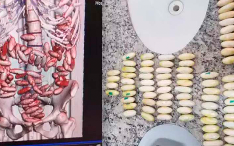 Cada cápsula encontrada possui 12 gramas de cocaína e havia um alto risco de rompimento no estômago, o que poderia causar uma overdose capaz de levar à morte;