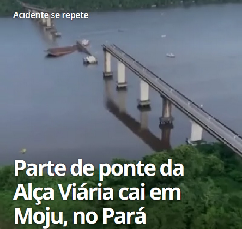 Parte de uma ponte do complexo Alça Viária, importante por fazer a ligação entre as regiões do Pará, caiu na madrugada deste sábado (6) no Rio Moju, próximo ao município de Acará. As primeiras informações do Centro Integrado de Operações (Ciop) são de que, no momento do acidente, dois veículos estavam passando sobre a ponte. Ainda não há confirmação sobre mortos ou feridos.
