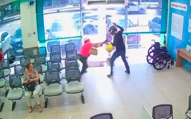 O ato de violência foi registrado por câmeras de segurança de uma clínica, onde a vítima tentou refúgio – assista ao vídeo abaixo.