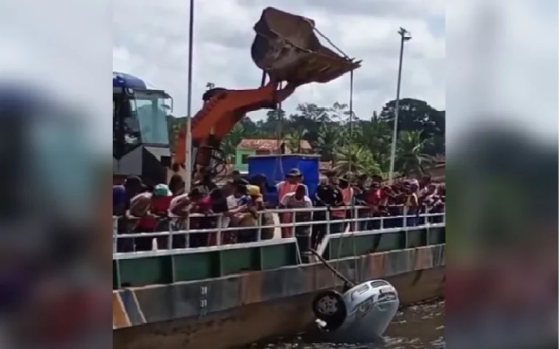 Uma imagem mostra o veículo sendo retirado do rio com o auxílio de uma escavadeira. Informações apontam que havia duas pessoas no veículo; uma morreu e a outra foi encaminhada para atendimento médico. Não informações sobre o seu estado de saúde.