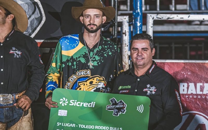 (Foto:Reprodução) – Cleverson Douglas Barbosa, de Castelo de Sonhos-PA, entre os cinco no “Toledo Rodeo Bulls” e leva premio em destaque da edição 2025; confira os vencedores