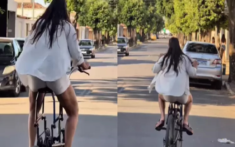 (Reprodução / Instagram @glenda_becker) – A influenciadora baiana Glenda Becker chamou a atenção nas redes sociais ao mostrar um novo jeito de pedalar. Em Taiobeiras, no estado de Minas Gerais, Glenda está em uma “bicicletaria” e, entre os mais diversos modelos, encontra uma que precisa do movimento do quadril para andar. O momento foi gravado e publicado nas redes sociais, rendendo risadas da influenciadora e de internautas.