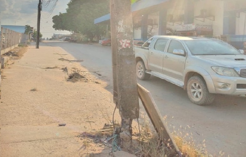 PERIGO: Poste próximo ao Supermercado Castanha ameaça cair em Novo Progresso.