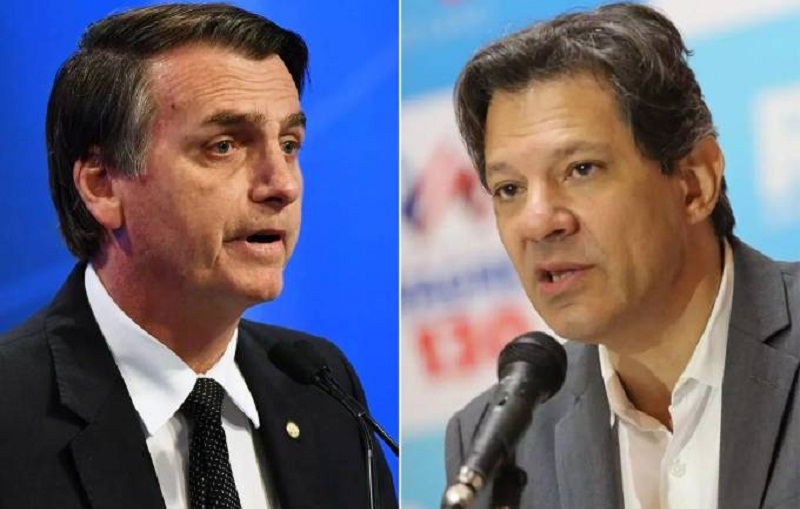 Bolsonaro chegou ao segundo turno com a preferência de 46,03% do eleitorado (ou 49,2 milhões de votos). Haddad teve 29,28% dos votos válidos (31,3 milhões de votos).