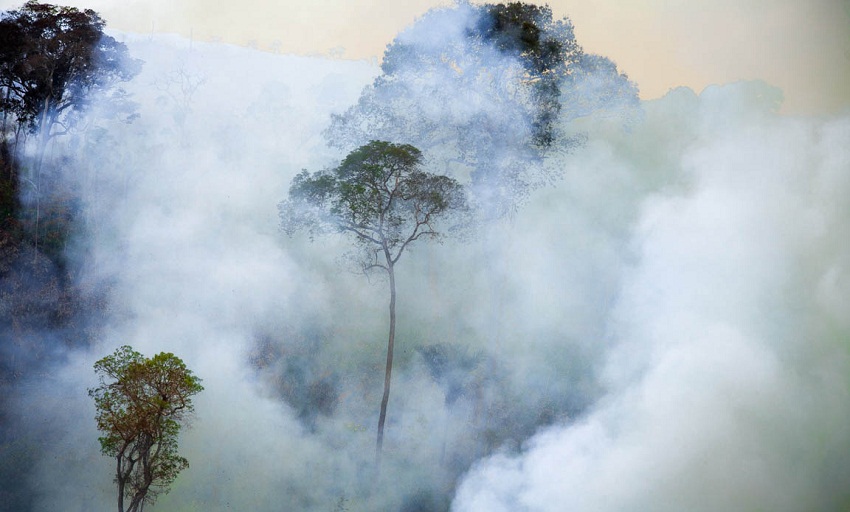 Foto:Área em chamas na Floresta Nacional de Jamanxim. O fogo é usado para destruir a floresta-
