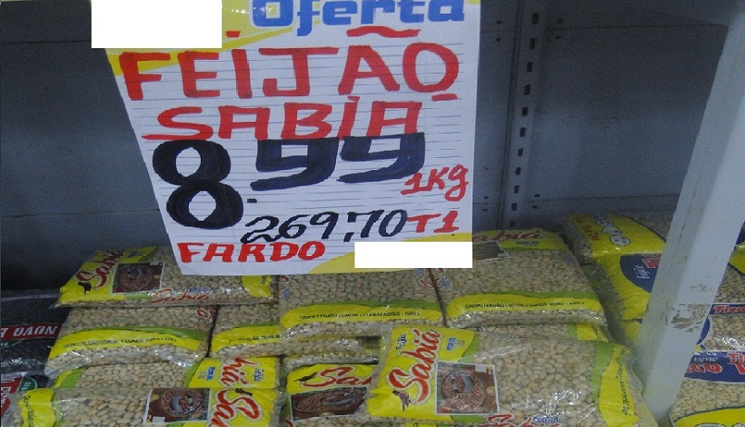 Feijão é vendido na Promoção em Supermercado da Cidade. “O Menor preço foi encontrado R$ 7,39 reais”.