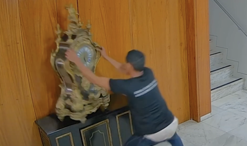 Apesar de identificado, rapaz que quebrou relógio que data do século 17 ainda não foi detido e é procurado pela PF – (| Foto: Câmeras internas Palácio do Planalto)