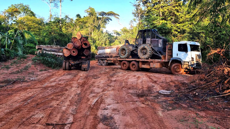 A Polícia Federal, em ação conjunta com o Instituto Brasileiro do Meio Ambiente e dos Recursos Naturais Renováveis, interrompeu, hoje de madrugada, as atividades de 15 caminhões carregados de madeira, três tratores e três motos na terra indígena Aripuanã, na região da aldeia Taquaral, no âmbito da operação contínua Onipresente.