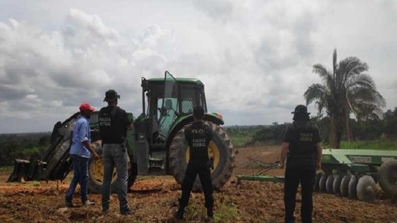 A Polícia Federal prendeu em flagrante, na tarde desta segunda-feira (14), no município de Marabá, sudeste paraense, dois homens que invadiram área da União Federal e desobedeceram uma decisão judicial sobre ocupação de terra pública, utilizando tratores de grande porte para destruir pequenas lavouras e vegetação em local onde estava a população ribeirinha.