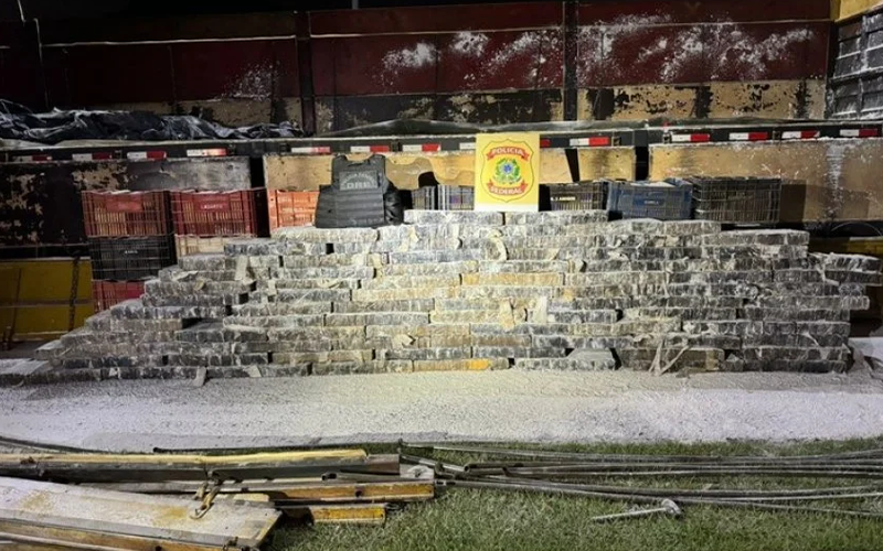 Foto: Reprodução | Foz do Iguaçu/PR. Policiais federias interceptaram o transporte de uma carga de mais de 1,7 tonelada de maconha em um fundo falso de um caminhão, na tarde desta quarta-feira (16/10), no município de Céu Azul/PR.