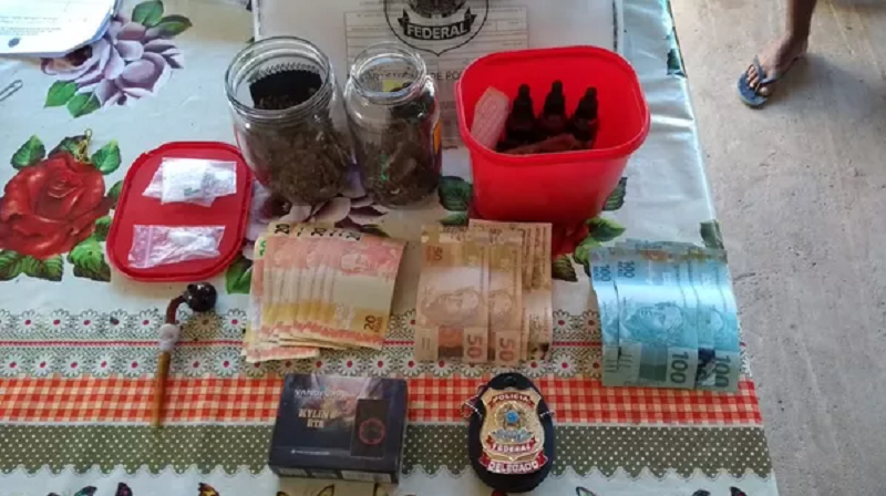 O mandado foi expedido pela Vara Única da Comarca de Ourilândia do Norte mediante solicitação da PF. Durante as buscas, os agentes encontraram na residência do investigado outras drogas sintéticas e maconha, além de R$ 1 mil em notas falsas.
