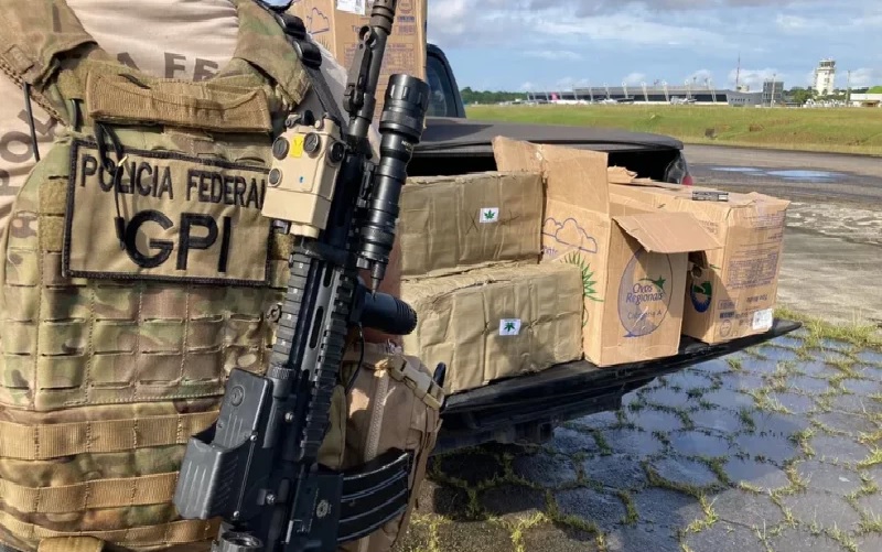(Foto:Divulgação/PF) – Foi preso temporariamente, em Belém, um segundo suspeito de participar do carregamento de quase 300 KG de skunk – substância conhecida como “supermaconha”.