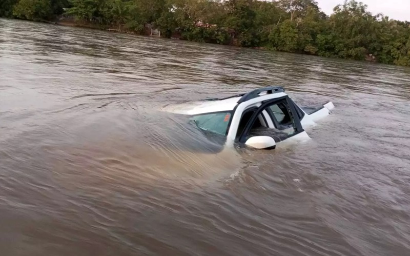 Picape cai em rio, motorista manda localização para amigos e desaparece