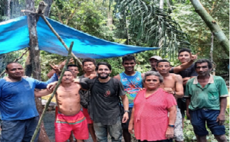 Antônio Sena e família de castanheiros que encontrou o piloto desaparecido nas matas – Créditos: Redes Sociais