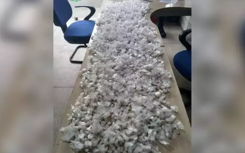 Segundo a PM, os agentes identificaram os homens assim que chegaram ao local. Os suspeitos, ao perceberem a presença dos policiais, tentaram fugir, contudo, foram detidos. Durante as buscas foram encontrados contendo 1.341 papelotes de pasta base de cocaína.