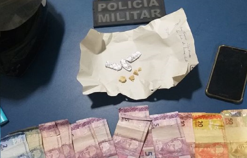 A guarnição comandada pelo 3° Sargento Maduro, Cabo André Gomes e soldado Paiva, encontraram com o acusado João Diniz Lourenço (Vulgo Maranhão) 04 Pedras de substância análoga a crack e R$119,00 reais em espécie e com Ezequiel Santos da Silva foi encontrado 3 trouxas de maconha dentro do capacete.