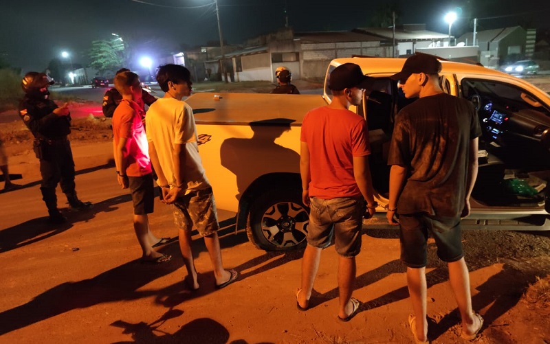 (Foto:Jorge Tadeu via WhatsApp) – A Polícia Militar pendeu quatro menores em uma camionete fazendo racha em vias públicas de Novo Progresso.