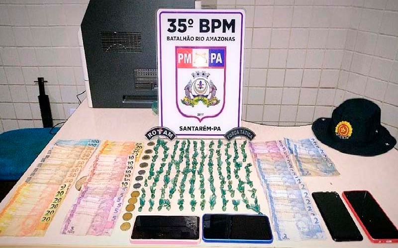 Em Santarém, município do Baixo Amazonas, a PM apreendeu 97 papelotes de pasta base de cocaína. A ação foi realizada na última sexta-feira (2) por agentes do 35º Batalhão de Polícia Militar, unidade subordinada ao Comando de Policiamento Regional I (CPR I).