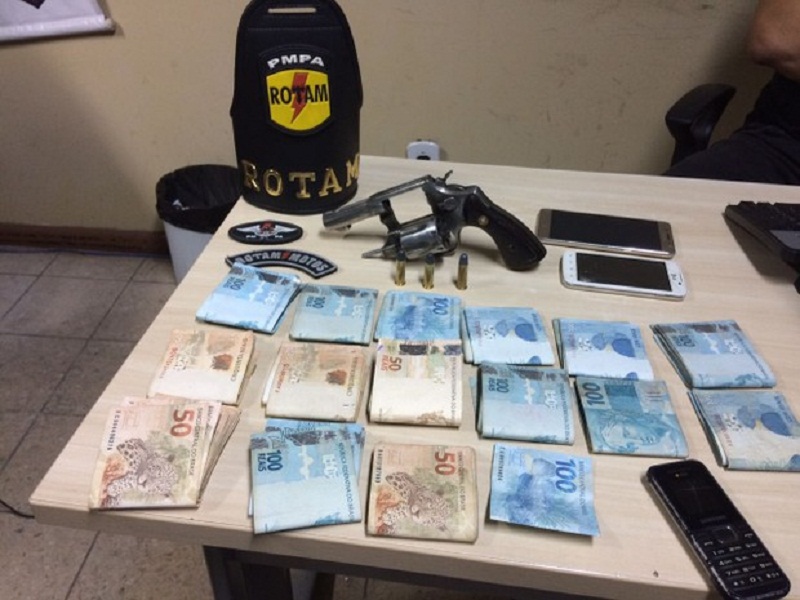 Ao serem revistados, foram encontrados com os homens dois celulares, a quantia de R$ 15.100, um revólver calibre 38 com três munições intactas. Ainda segundo a Segup, os suspeitos disseram que dinheiro havia sido roubado em saidinha bancária.