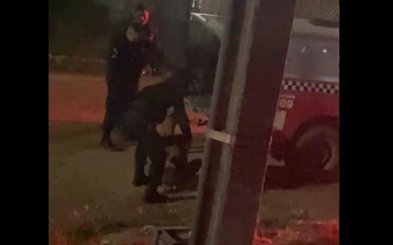 Chegando no local por volta das 23h30min, os policiais encontraram uma mulher por cima do homem o enforcando, ambos estavam visivelmente alterados, falando em língua estrangeira e sem identificação.