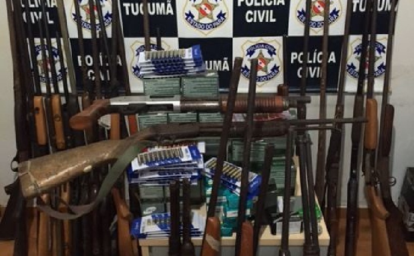 A polícia apreendeu, em uma operação em Tucumã, sudeste paraense, 32 espingardas e mais de 1,7 mil cartuchos de calibres diversos no interior de um depósito, na sede do município. O flagrante resultou de denúncias que geraram investigações sobre a prática de manter em depósito armamento e munição em desacordo com a legislação. O responsável pelo imóvel, Odair Inácio Batista, vai responder pelo crime.