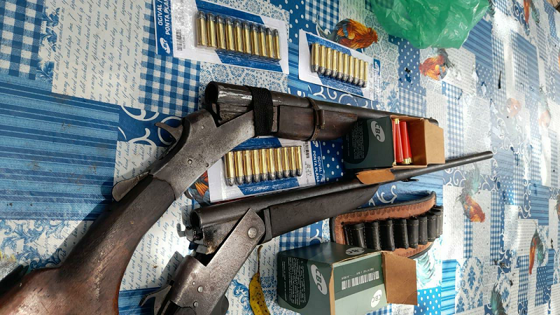 A polícia conta que, a pedido do delegado de Polícia Civil, fez diligências até aquela comunidade com intuito de intimar um homem conhecido como “Antena” e seus funcionários. Porém, quando a guarnição chegou ao local, ele tomou rumo ignorado, deixando duas espingardas (uma calibre 20; a outra, 28), cartuchos e 3 cartelas de munições.