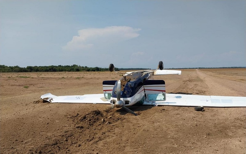 O avião pousou em uma fazenda na fronteira e, diante da situação, agentes da PF se deslocaram até o local.