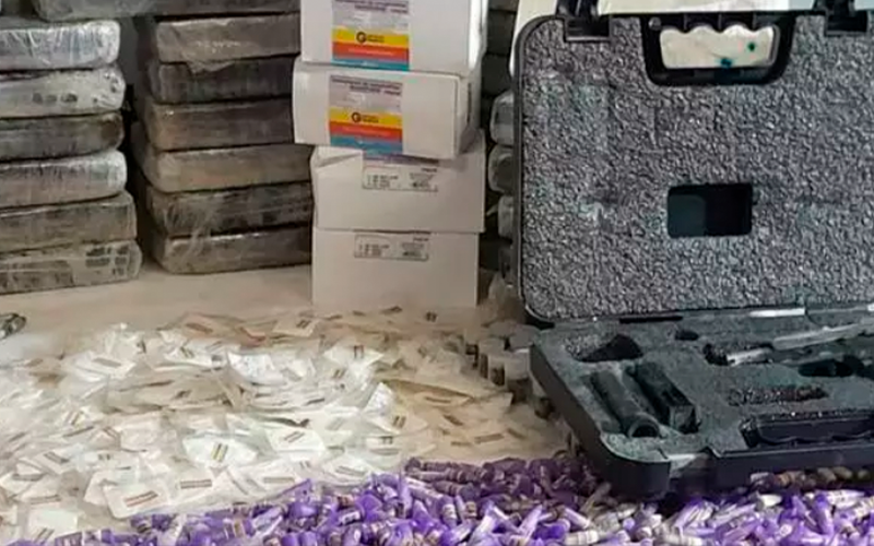 Ao chegar ao local indicado, os policiais surpreenderam mais dois homens que estavam em um imóvel com grande quantidade de drogas, parte delas já preparada para comercialização. No local também foram encontradas duas armas e vários objetos utilizados para preparar e refinar a droga.