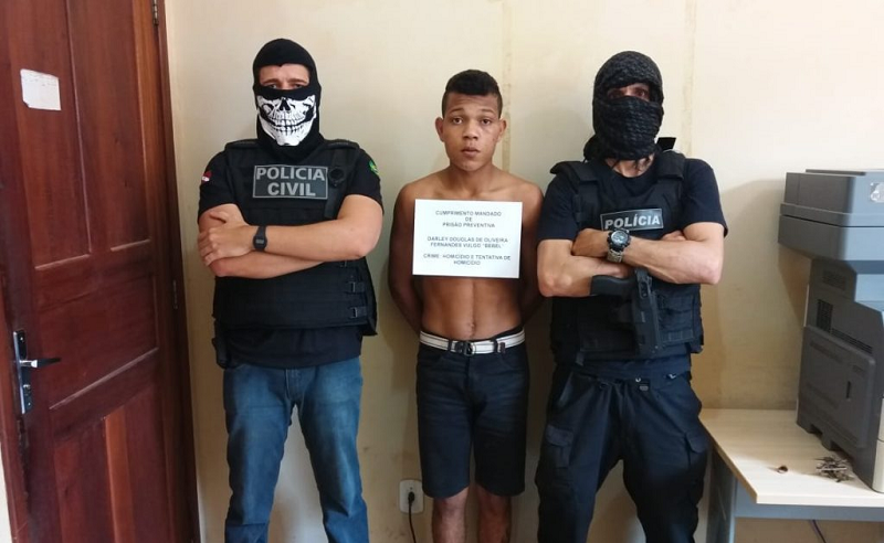 Darley Douglas de Oliveira Fernandes, vulgo “Bebel”, foi preso no próprio município, em um conjunto habitacional, após trabalho de investigação policial. Mandado foi cumprido pelo investigado João e Escrivão Soares, com apoio administrativo do Escrivão Ehoc Duarte.