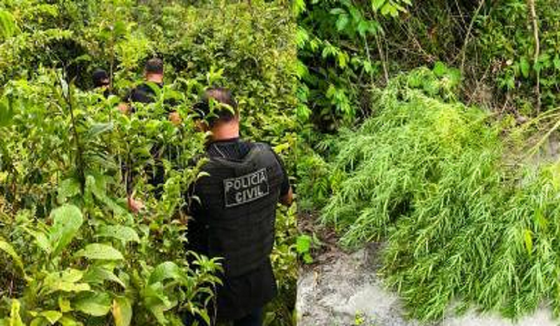 Foi então que uma operação teve início para apurar as informações. Durante as diligências pela área informada, os agentes encontraram duas plantações de cannabis entre plantações de feijão e separadamente 18 pés colhidos da erva.