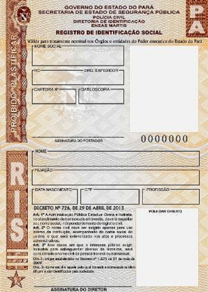 A carteira de nome social foi lançada no Pará, em outubro de 2013, como forma de garantir e reconhecer o exercício pleno da cidadania à comunidade LGBT. O documento permite o reconhecimento de transexuais e travestis pelo nome com o qual se identificam. O direito foi assegurado pelo decreto de número 726, publicado em maio de 2013, no Diário Oficial do Estado.