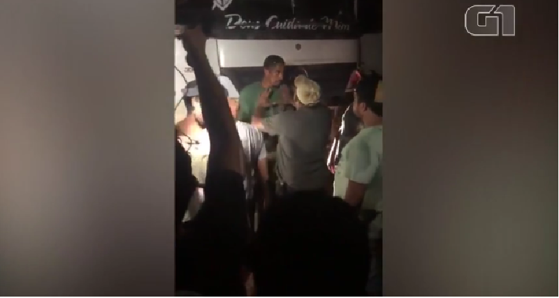 No vídeo, durante a discussão, um dos madeireiros joga uma garrafa contra o fiscal e o atinge no rosto.