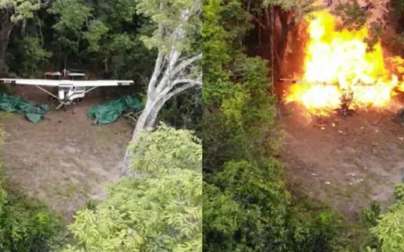 O avião estava escondido no meio da mata e foi destruído com uso de explosivos. A destruição da aeronave, segundo PF, ocorreu após fiscais do Instituto Brasileiro do Meio Ambiente e dos Recursos Naturais Renováveis (Ibama) atestarem os indícios de que o monomotor era usado em ilícitos ambientais.
