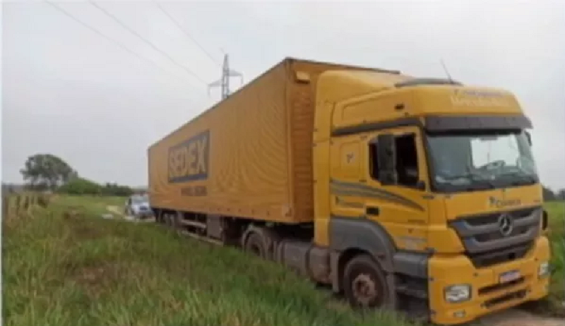 Carreta foi levada para estrada vicinal onde teve carga roubada. O valor da carga não foi divulgado.