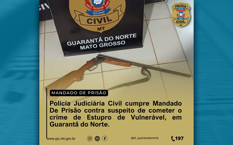 Polícia Judiciária Civil cumpre mandado de prisão contra suspeito de cometer o crime de estupro de vulnerável em Guarantã do Norte