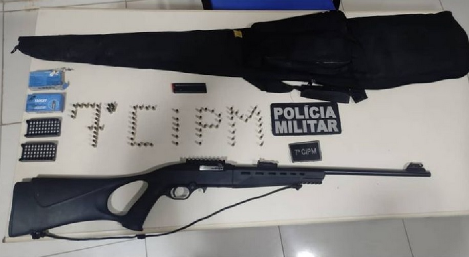 Após buscas na casa abandonada, foi encontrada, abaixo do assoalho, uma capa contendo um rifle de marca CBC, cal. 22, semi-automatico, numeração EUF4491398, 01 (um) carregador e 76 munições intactas. A arma apreendida foi apresentada na Delegacia de Polícia de Novo Progresso para os procedimentos legais cabíveis.