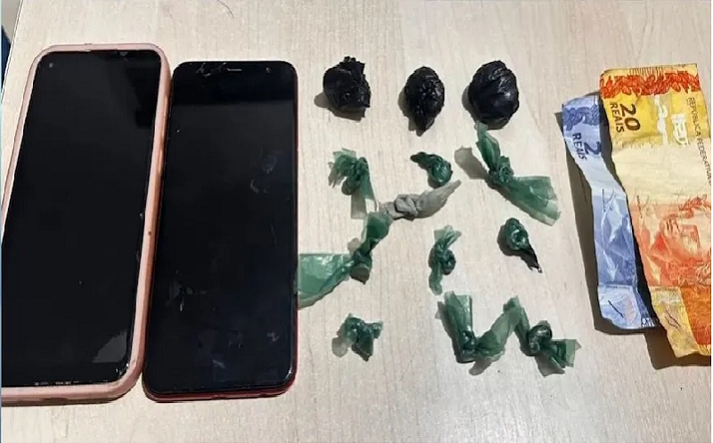 Durante uma revista pessoal, os policiais encontraram porções de crack. Em seguida, eles foram em direção ao interior da casa, onde encontraram mais drogas, entre crack e maconha, além de dois aparelhos celulares e uma pequena quantia em dinheiro.