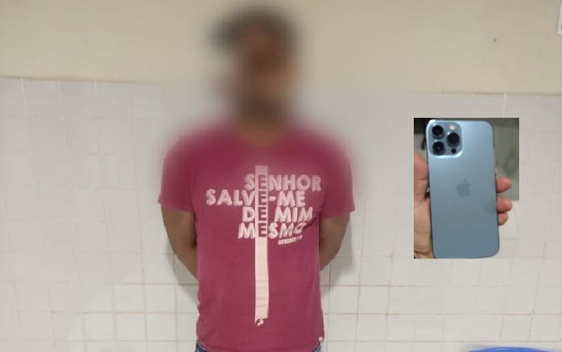 Victor Rafael Coelho Soares, preso em flagrante pela Polícia Militar pelo crime de furto e o IPhone foi recuperado – (Foto: Reprodução PM)