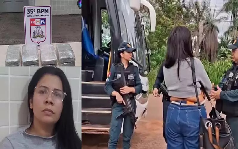 Polícia Militar prende passageira de ônibus transportando 8 tabletes de drogas, em Santarém (PA)