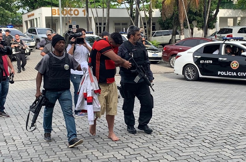 Torcedor do Flamengo preso na operação da Polícia Civil na manhã desta terça-feira — Foto: Fernanda Rouvenat / G1
