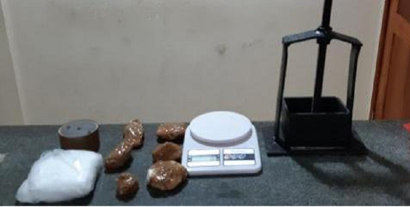 (Foto:Reprodução) – Operação da Denarc apreendeu ainda uma balança de precisão e uma prensa metálica, utilizadas no preparo das substâncias ilícitas