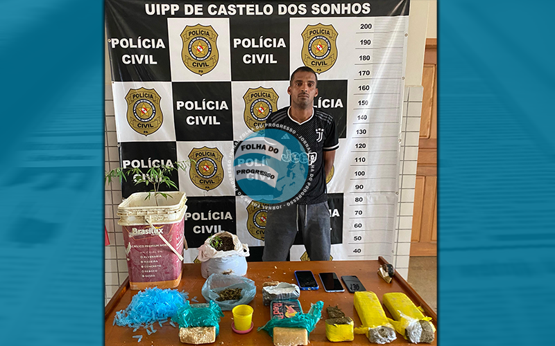 De acordo com as investigações da Delegacia de Castelo dos Sonhos, o preso foi alvo de mandado de busca e apreensão domiciliar e preso em flagrante por tráfico de drogas.