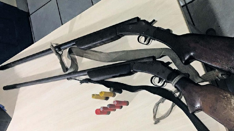 Os suspeitos de incadirem a fazenda foram presos com armas | Reprodução