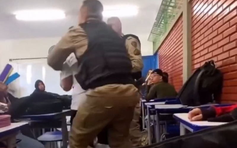 Segundo a Secretaria de Estado de Educação de Minas Gerais (SEE/MG), o estudante foi até a escola sem a presença dos responsáveis, apesar de ter sido convocado, juntamente com o Conselho Tutelar, para tratar de seu comportamento. Diante das atitudes inadequadas do jovem e da recusa em acatar as orientações da equipe gestora, a Polícia Militar foi acionada. Em vídeo gravado por um colega, é possível ver o momento em que um policial retira o aluno da sala, enquanto outra aluna, indignada com a situação, se levanta e chega a ameaçar uma professora, dizendo: “Eu vou te matar”.