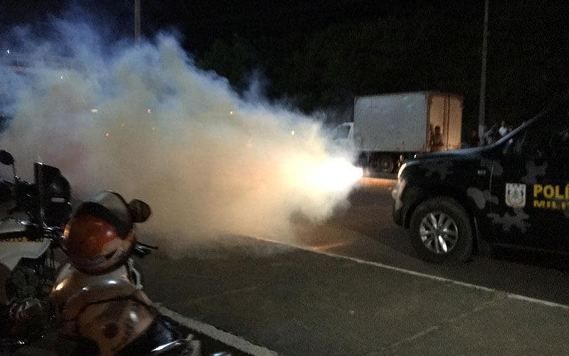 A Tropa de Choque chegou ao local por volta de 20h. Usando bombas de efeito moral e balas de borracha, os agentes utilizaram a força para dispersar os manifestantes, que até então se mantinham irredutíveis em liberar a via antes do prefeito Arthur Brito (PV) dar uma explicação sobre as medidas.