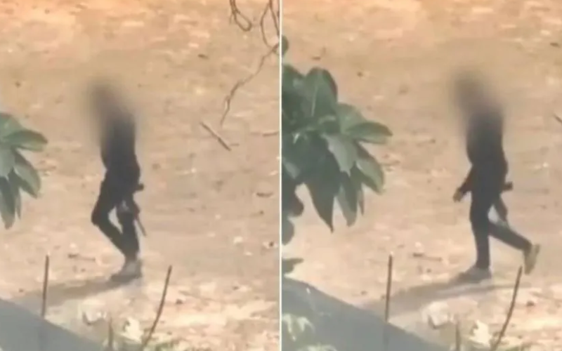 Um vídeo gravado por moradores mostra o momento em que o homem caminha armado após os disparos.