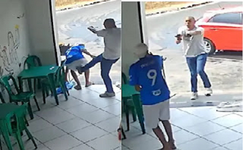 No vídeo, o adolescente, de 17 anos, aparece segurando uma bandeira eleitoral quando o candidato, de 45 anos, se irrita e agride a vítima com tapas e chutes, além de sacar um revólver e apontar para o rapaz