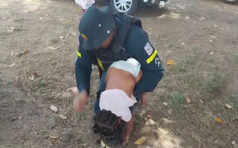 A mãe da criança de colo procurou os policiais já que a filha estava desacordada. Um vídeo mostra o momento em que o soldado De Lima aplica a manobra de Heimlich para salvar o bebê, de dez meses de idade, do desengasgo – assista :