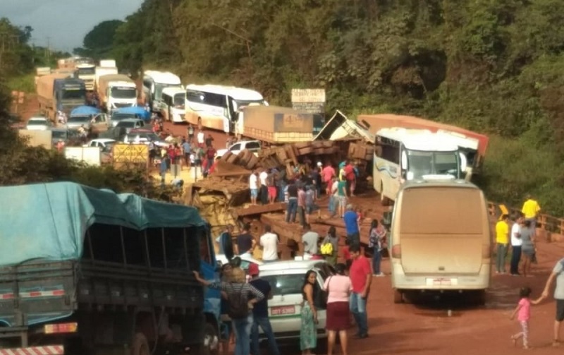 Desde então, o trânsito esta paralisado não tem desvio no local, a fila de veículos é grande, um caminhão carregado de soja tombou na cabeceira da ponte, ainda não se sabe a causa do acidente. A ponte de madeira pode ter cedido devido excesso de peso dos veículos que trafegam naquele trecho, a estrutura foi danificada.