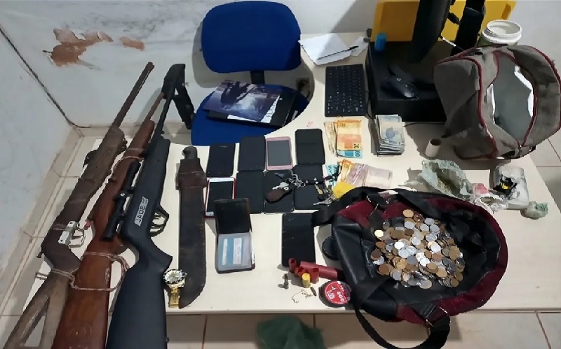 A corporação ainda relatou que o homem disse ter drogas e armas dentro da residência, onde os agentes realizaram buscas e encontraram 194 papelotes de oxi, outras 355 gramas da mesma droga, duas armas, duas espingardas de fabricação artesanal, uma carabina de pressão, R$ 1.269 e nove aparelhos celulares.